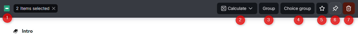 In the new design of the action bar, the buttons are always visible to the user, but disabled. They become active only when the required number of questions for the action is selected (for example, to create a selection group, at least 2 questions must be selected, otherwise, the button will not be available for clicking).