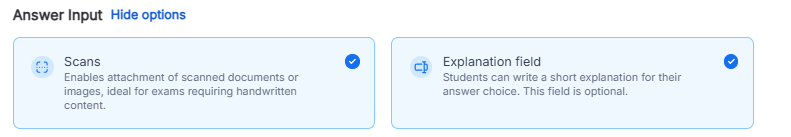 (2) Allow Scanned Answers: Enable this option to allow students to scan their written answers into the app.