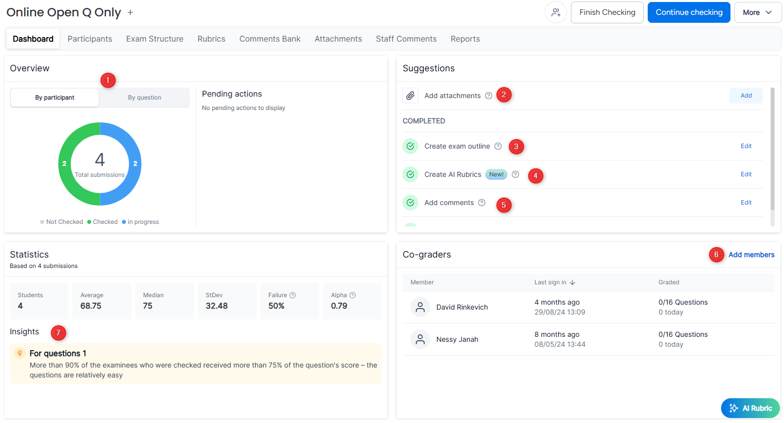 7. View exam statistics and gain insights from student answers in the exam.