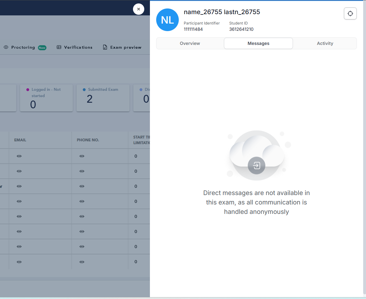 Starting today, you can manage anonymous communication between monitor users(lecturers only) and exam participants.