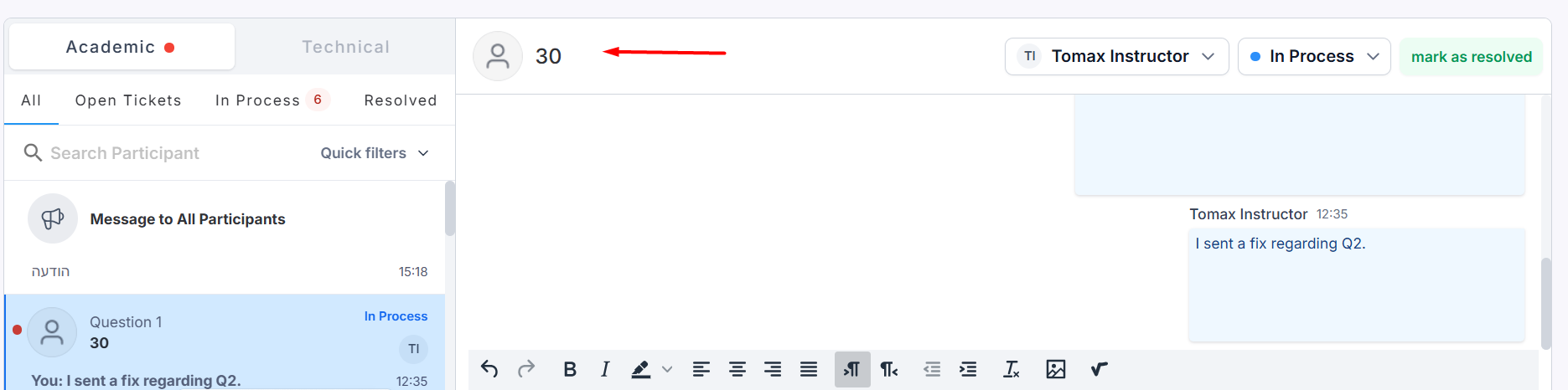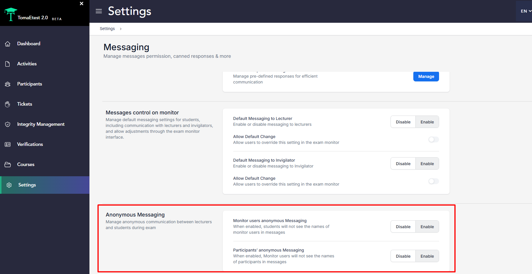 2. Participants’ anonymous Messaging - When this option is enabled, lecturers will not see the names of participants in the messages.