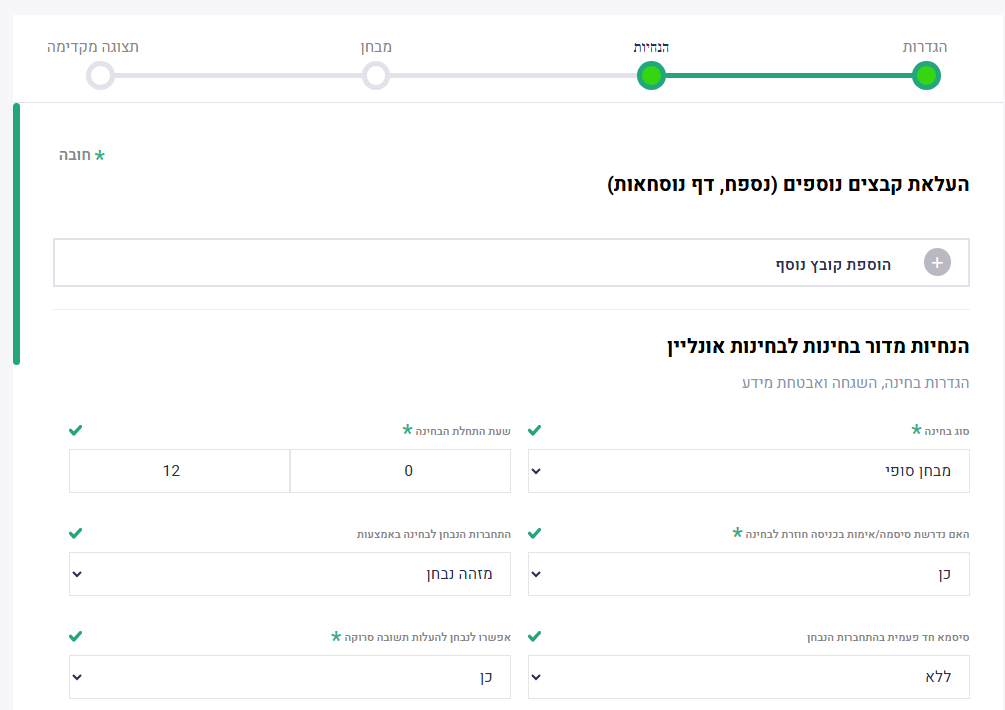 הגעתם לאשף יצירת הבחינה.